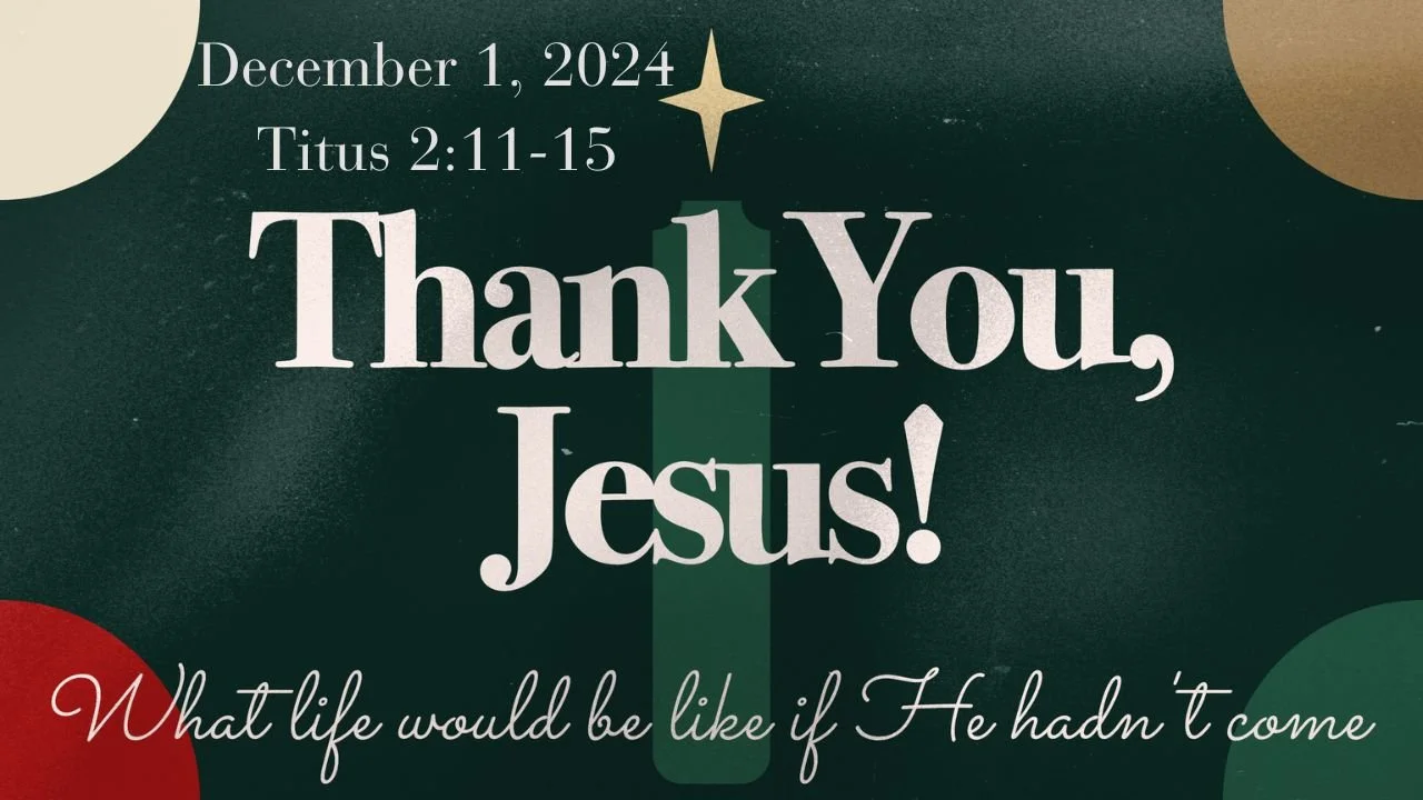12/1/24 - “The Hope of God’s Grace” - Titus 2:11-15 ESV - Pastor Matt Vogel