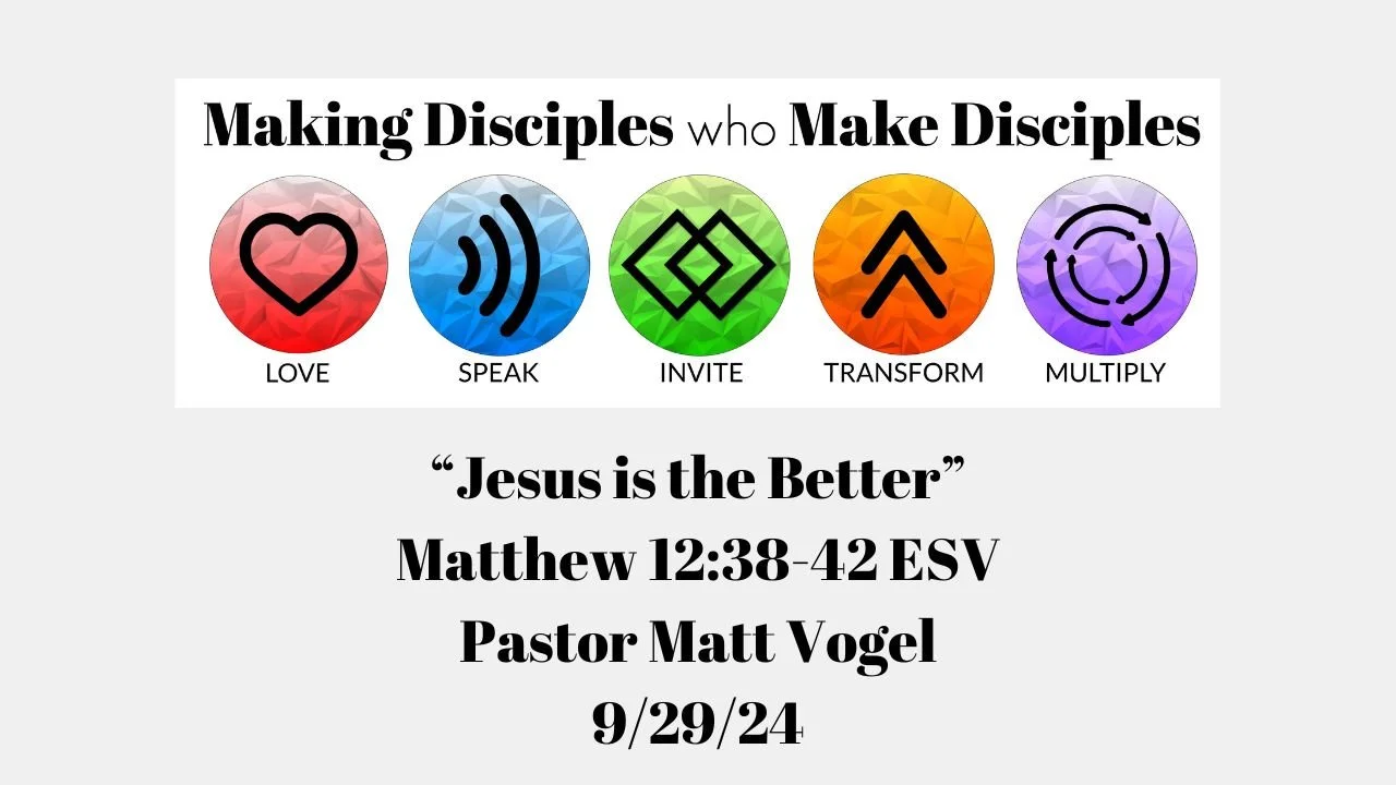 9/29/24 - "Jesus is the Better" - Matthew 12:38-42 ESV - Pastor Matt Vogel