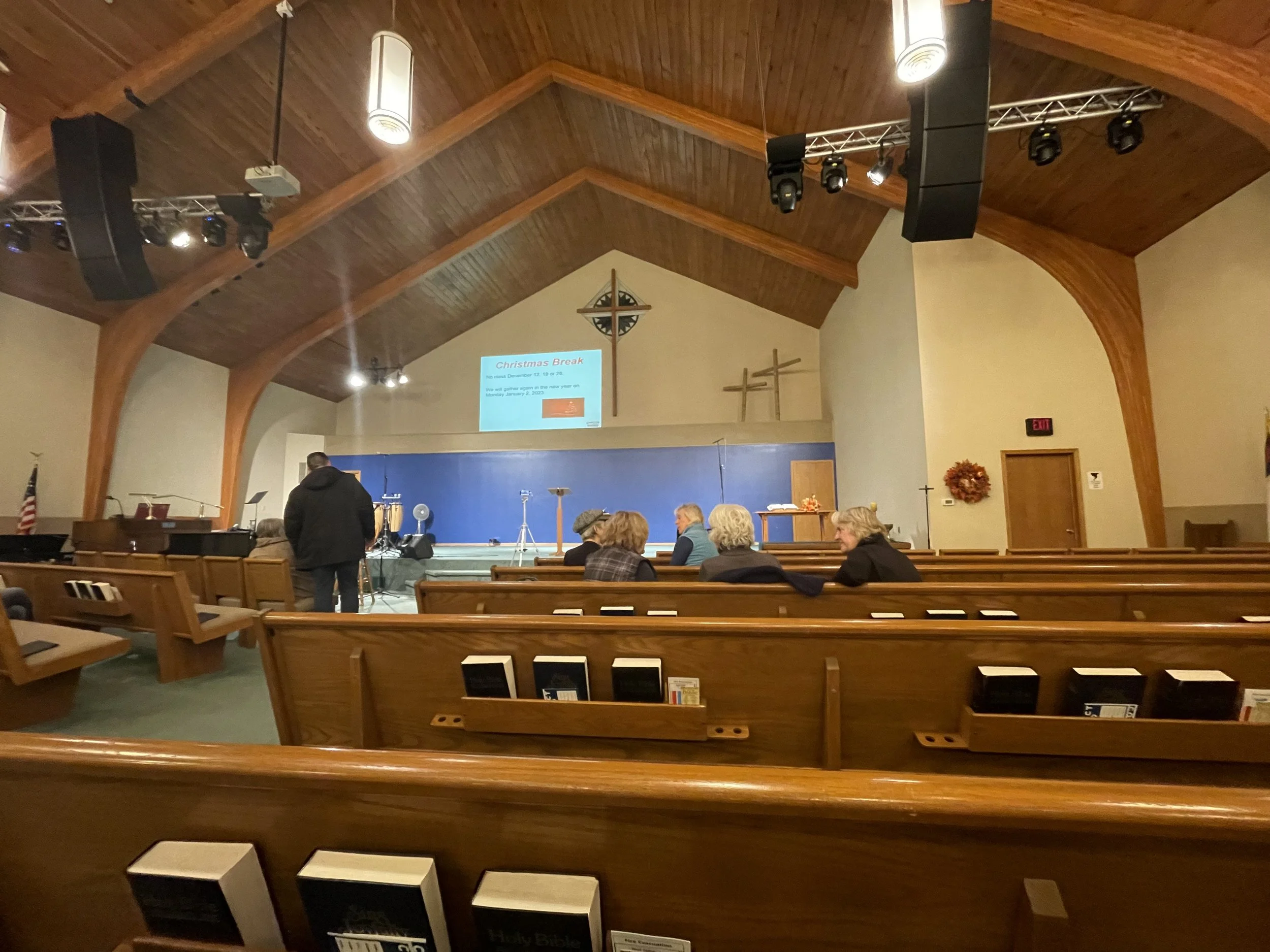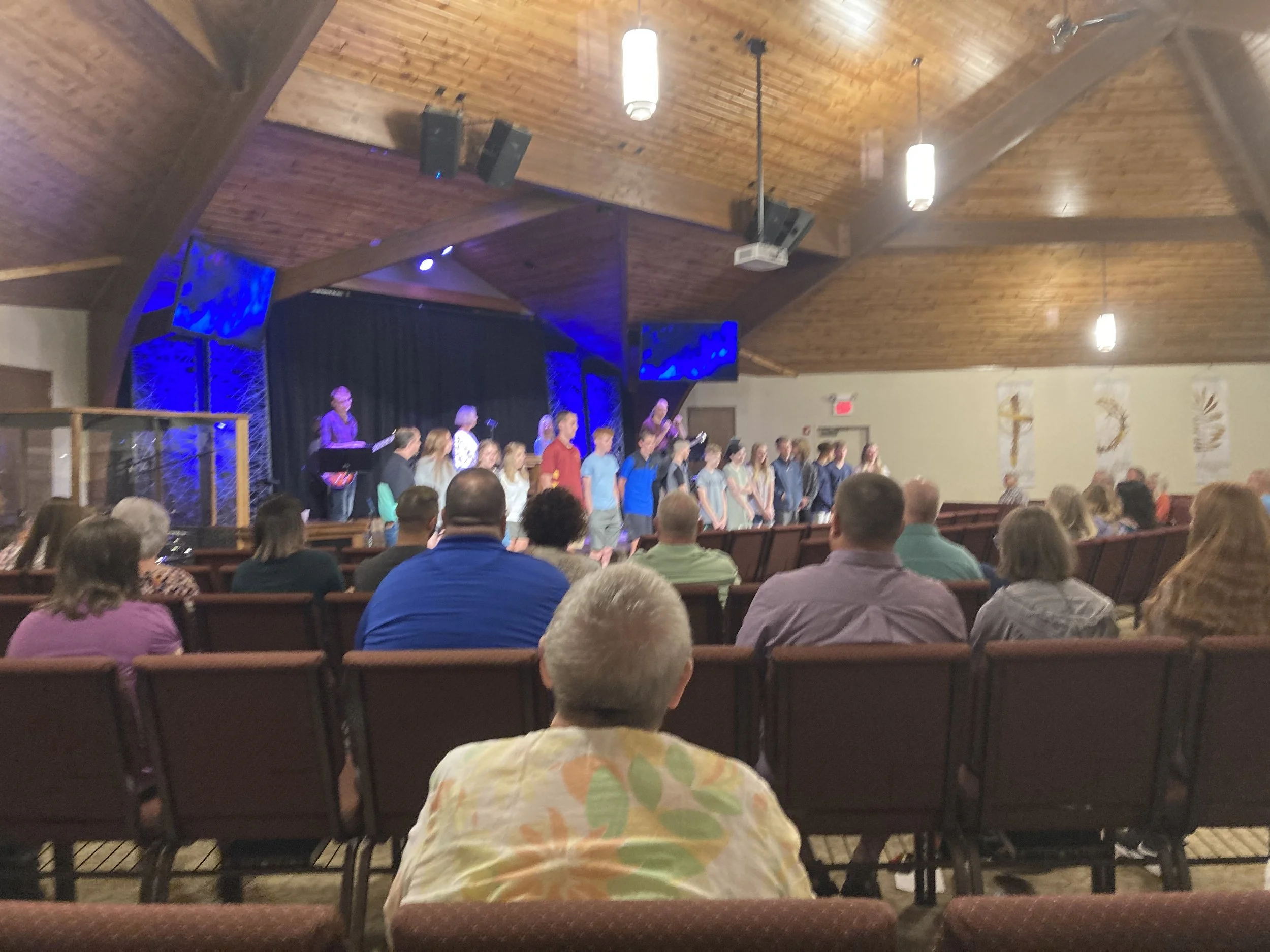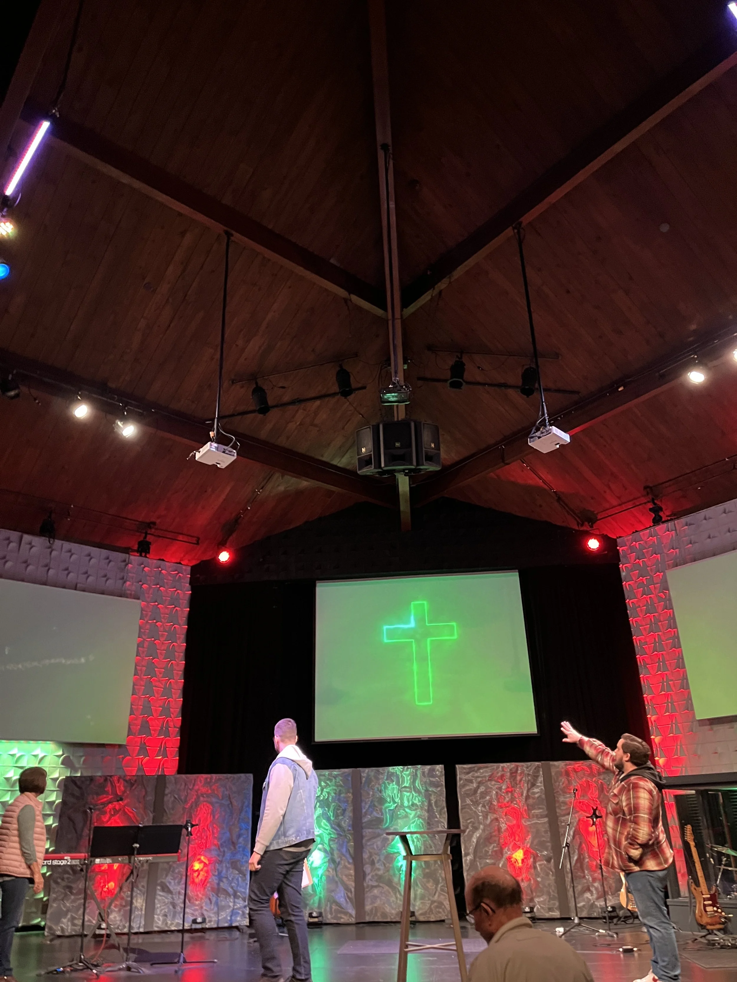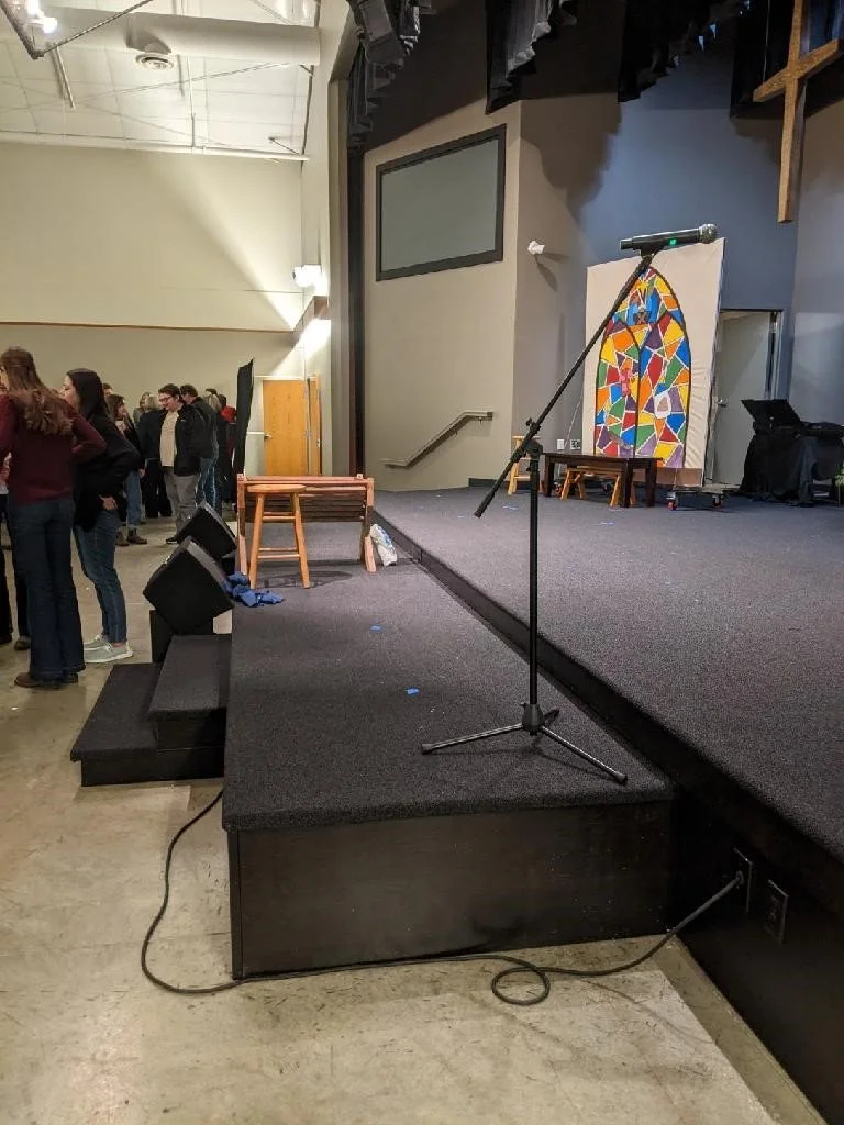 Bump out with cross centered on peak, stage centered on gym floor