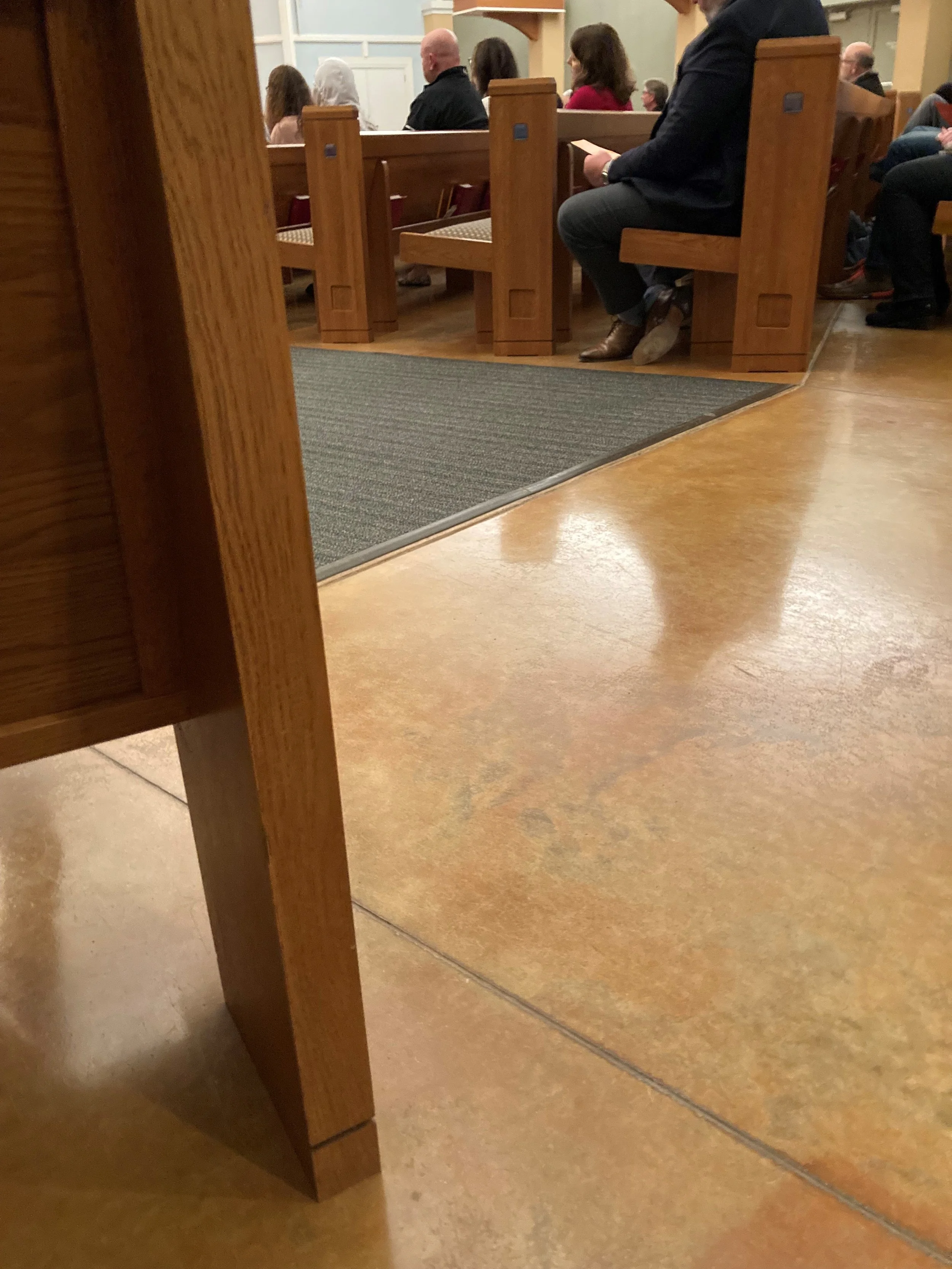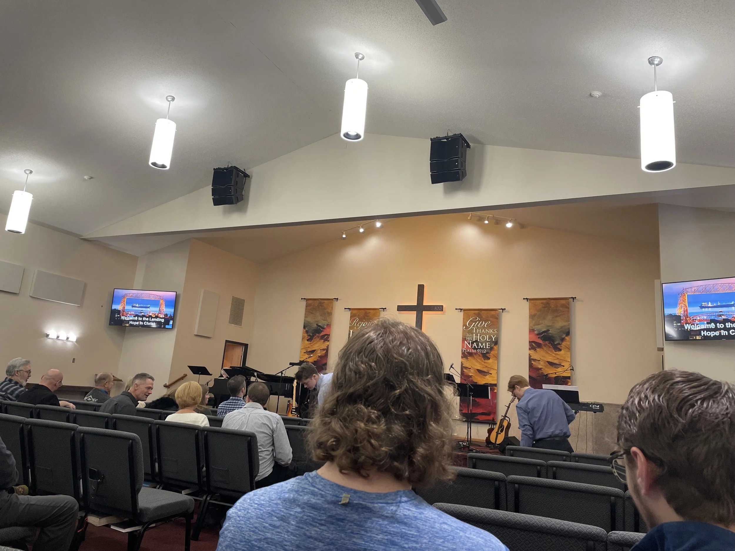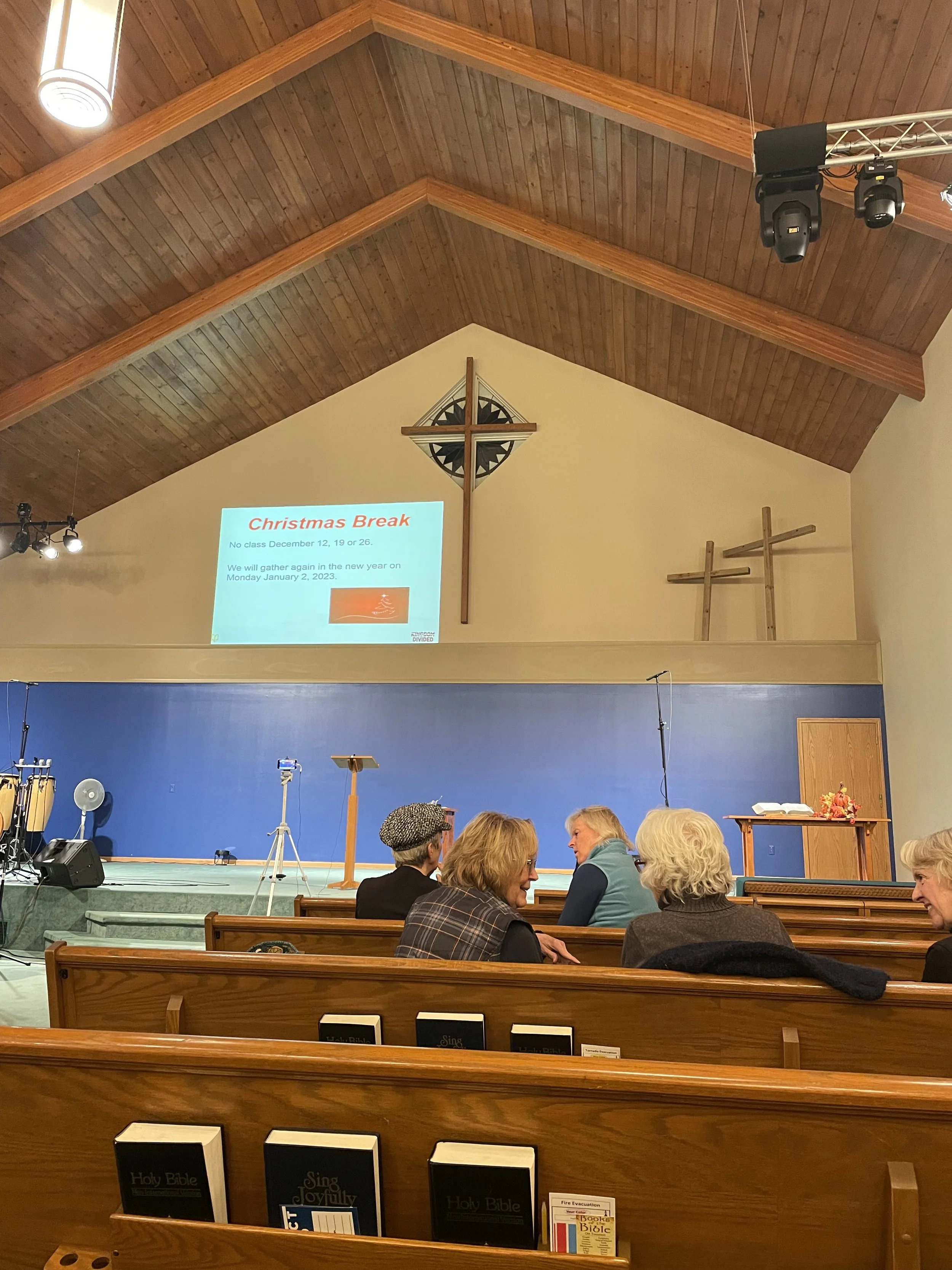 Bump out with cross centered on peak, stage centered on gym floor
